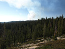 先週末27日の煙。Tioga RoadとWhite Wolf Rdの交差点より西側数百メート地点より撮影(White Wolfの道標のあるところで、道路北側に広い路肩あり)。