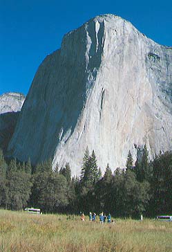 同じ時に同じ場所を通りかかったなら、まずほとんどの人が車を止めて撮影をすると思いますが、Rowellのようなことをどれだけの人が意識するのかは興味深いところです。 上の写真は、4冊の写真集を並べたものです。左上から時計回りに「Mountain Light」(初版1986年、これは1995年 Sierra Club Books版)、「THE YOSEMITE」(1989年、Sierra Club Books版)、「THE YOSEMITE」(2001年, YA版)、「California THE BEAUTIFUL」(2002年、Welcome Books版)です。面白いことに、年が進むにつれて、どんどん赤色が強くなって(着色されて?)きています。 さてValleyに到着したものの、救助はNPSの先走りだったため、その日に中止になります。Hardingらは順調に登り続け、11月18日に報道陣が並ぶEl Capの頂上にたどり着きました。
