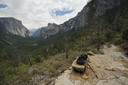 こんな感じの処でした。参考のために、パック、トレッキングポールなどを写し込んでいます。かなり広角で撮ったので、El Capなどが遠くにあるように見えていますが、実際はTunnel Viewよりやや大きく見えます。