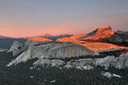 上写真は、Tioga RoadのBM8451地点で撮影。赤丸はLower Cathedral Lakeへ続くなだらかな岩場の始まるところ。ここへは、Pywiackドームの北側もしくは南麓からアプローチ可能(初心者向きのルートではありません)。