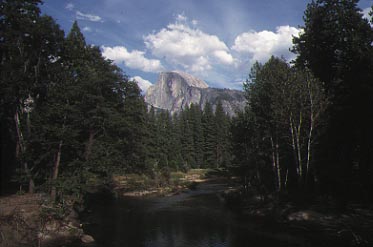 ヨセミテ国立公園の中で、意外に「行ってみたい」と要望の高いのがミラー・レイクです。「湖」という名前から、きれいな水に、山が美しく映っているというイメージがあるのかと思います。実際には、これは「湖」ではなく、「プール」(池、水溜り)に近い状態のもので、夏に行っても水がない場合が多いです。上の写真は、昨年2004年8月上旬に訪れた時のもの。まったく水がなく、池底を歩いてました。