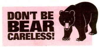 すやまさんの熊の写真の興奮が冷めやらない今日、以下の5枚の写真が手元に届きました。バックパッカーにカウンターバランス(食料をロープで木につるす)ではなく、ベアーキャニスターの使用を勧めるための資料です。人物後方の、縄にぶら下がっている茶色い箱は、鳥の餌箱だそうです。