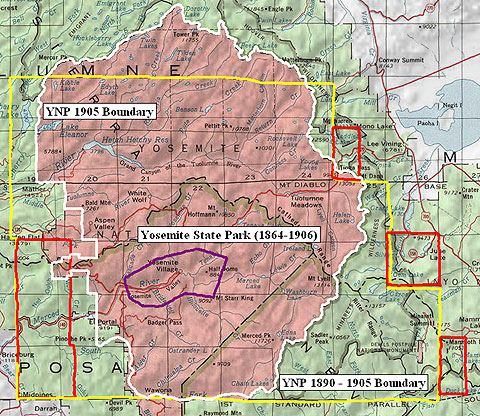 1890年にヨセミテ国立公園が設立されてからも、ヨセミテ渓谷は依然カリフォルニア州の所有下にあり、