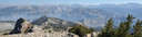 Tuolumne渓谷の煙:Wildcat Pt.は、中央右側に見える黒い三角の影のある大きな崖(手前はFalls Ridge)。写真左端奥はTower Peak。中央のギャップ左側はMatterhorn Peak(Sawtooth Range、ヨセミテの北の境界)。