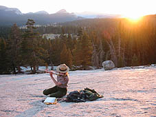 タイオガロードに入り、オルムステッドポイント、テナヤ湖、ビジターセンターにストップして、1430 ツォロミーメドウズキャンプ場にチェックインした。