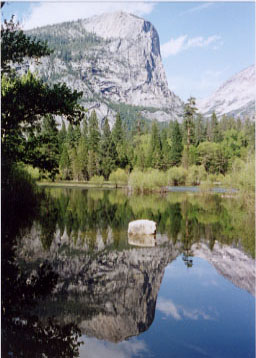 川崎市在住の神田さんが5/6-12の日程でサンフランシスコ〜ヨセミテを旅してこられました。ハーフドーム(左)と満水のミラーレイク(右)の写真もおくってくださいました。ミラーレイクは夏には干上がってしまいますので、貴重な写真です。(2000/5/16)