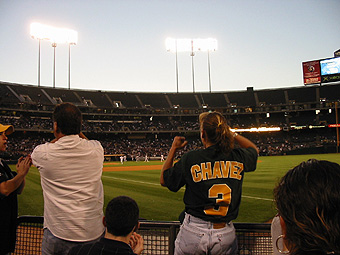 夕方BART(ベイエリア各都市を結ぶ電車)にのってコロシアム(地元の人はこの球場をこう呼ぶ。)へ。シートはイチローの守備位置のライト近くにとり、ビール飲んでプレイボールを待つ。