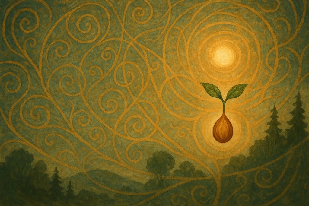 チャドウィックは、種子をイデーの象徴として特別に重視する。種子は、物理的には小さく単純に見えるが、その中には生命の全体性が凝縮されており、既知・未知すべての可能性を宿している。種子は「見える世界」と「見えない世界」をつなぐ門であり、その内部には「種の中の種」、すなわち無限のバリエーションと未来の生命が潜在している。彼は、林檎の種にあらゆる林檎の可能性が含まれているという例を挙げ、これを生命の全体性の具体的証左として示す。種子を観察することは、単なる植物学的行為ではなく、イデー的な感受性を鍛える行為でもある。なぜなら、種子の本質は理性や知性によって分析できるものではなく、直観的な内的共鳴によってのみ触れることができるからである。さらに、種子を全体性の象徴として理解することで、人間の存在や自然界のあらゆる生命が相互に結びついていることが見えてくる。チャドウィックは、このような視点の回復こそが、分断された世界観を超えた真の再生(rebirth)であり、イデーを通じて全体性を取り戻す道であると強調する。