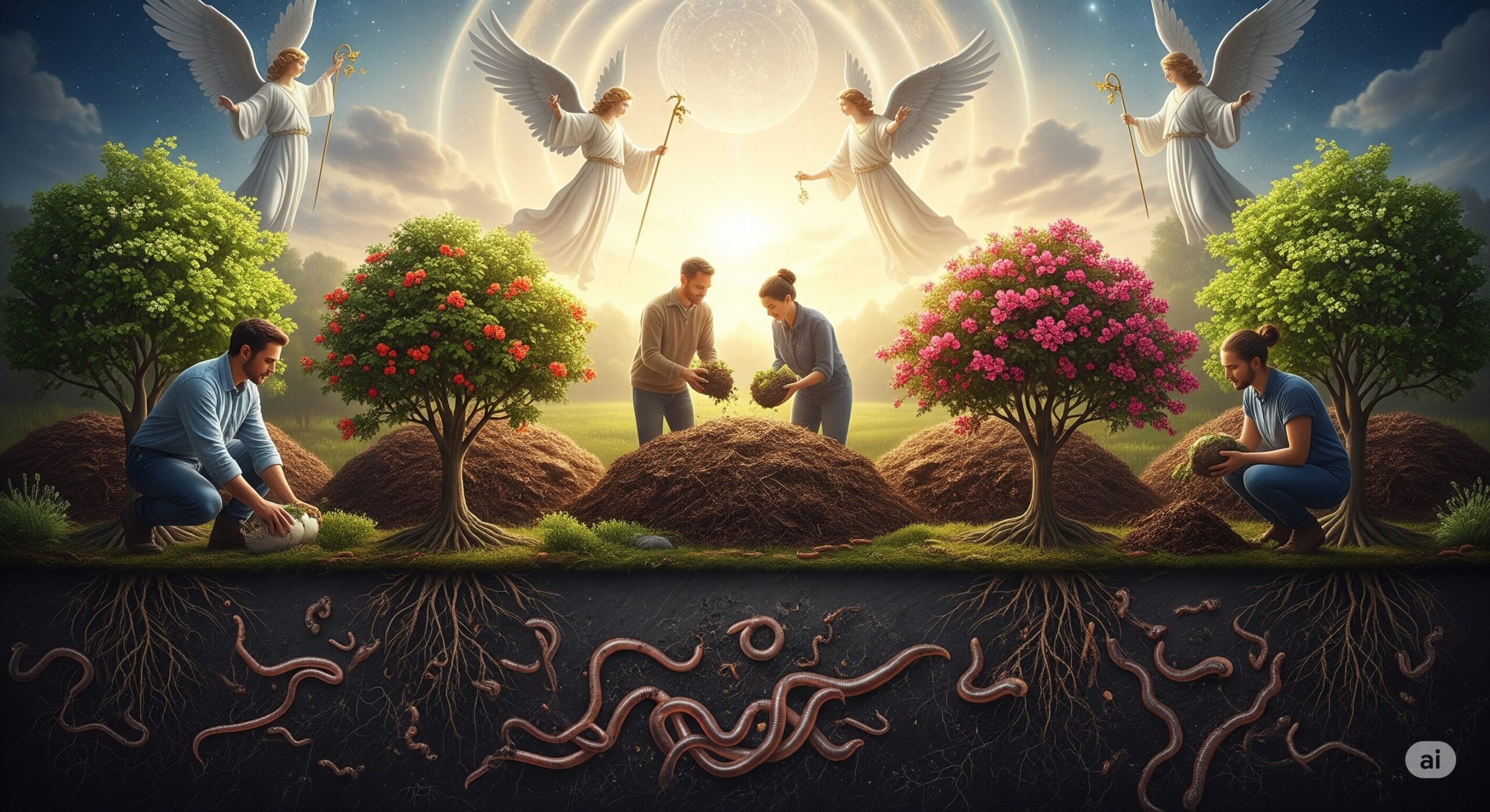 チャドウィックは、コンポストを単なる肥料製造の技術としてではなく、自然の摂理そのものとして捉える視点を示しています。産業革命以降の都市化と効率主義は、地域の循環と土壌の健全性を断絶させましたが、コンポストは人間が自然の循環に再び参加するための鍵であると彼は説きます。四大天使の力が季節と生命を貫くという宇宙的秩序の中で、ミミズや深根性植物、そして人間が果たすべき役割が明確に示されます。技術的には、適切な素材の組み合わせや温度・湿度管理が重要であり、それは単なる効率性の追求ではなく、生命の再生を支える調和の実践であると位置づけられています。