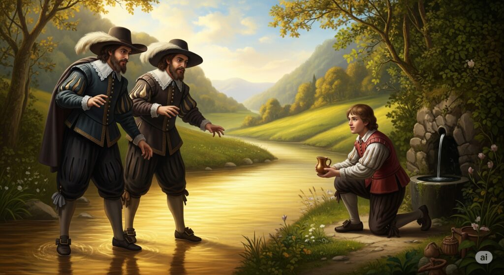 物語における「聖なる水」は、宗教的儀式により与えられる外面的な権威ではなく、慈悲と無私の行為を通してその効力を発揮する象徴である。兄たちは自らの渇きや恐怖を優先し、動物や子どもに水を与えることを拒むことで水を「不浄なもの」に変え、最終的に黒い石へと変貌する。これは生命を見捨てる行為がいかに自然の循環を断ち切り、自らをも滅ぼすかを示す寓話的表現である。