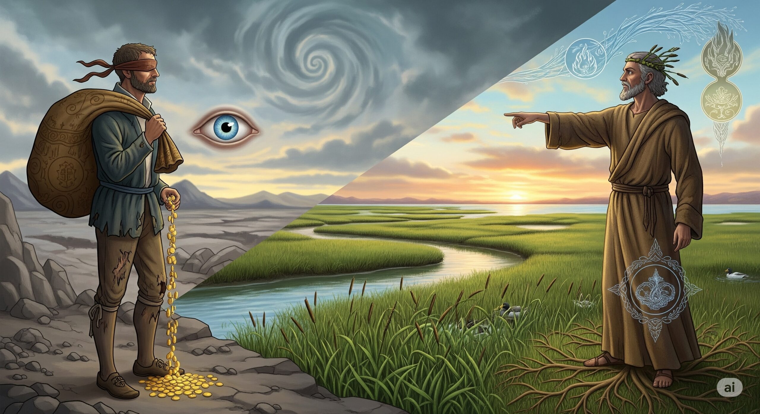 「左眼のみ」という禁を破った商人の失明は、知への近道と越権が洞察そのものを喪失させる逆説を示す。園芸に敷衍すれば、法則への服従を迂回する速効の資材・操作は、短期的利得と引き換えに系の可逆性と回復力を損なう。預言者の軌跡は、資源そのもの(駱駝の荷)よりも、関係性を見通す術(軟膏=視座)が価値の源泉であることを語る。Idéeに基づく節度ある適用(左眼)は視界を拓くが、欲望と制御幻想(右眼)は視界を閉ざすのである。設計者は「見える利益」を追うのではなく、「見えない秩序」を見続ける訓練を自らに課すべきである。肥沃は禁欲ではなく、関係性の統御における自由の獲得であり、その自由は規律に支えられるのである。