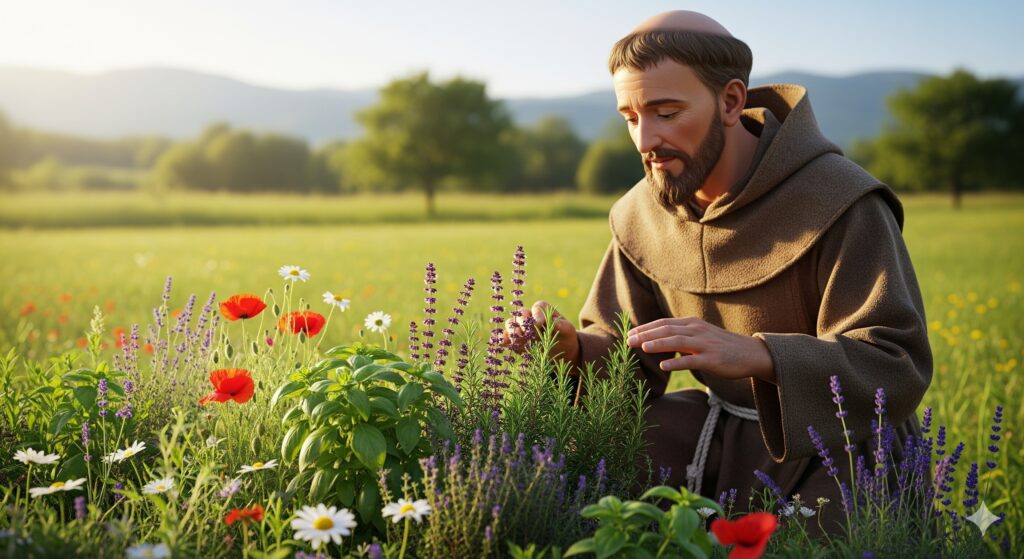 チャドウィックは「History of Herbs」の結びにおいて、薬草の歴史を単なる医療史としてではなく、人間の自然に対する態度の問題として描き出す。そしてその象徴的存在として聖フランチェスコを提示する。フランチェスコは13世紀イタリアの修道士であり、質素な生活と自然への深い敬愛で知られる人物である。彼は鳥や動物に説教をしたと伝えられるが、それは人間に聞く耳がなかったからではなく、神がすべての被造物に宿ると信じ、自然を「民主的な共同体」として捉えていたからである。鳥や狼に語りかけた逸話は、自然のあらゆる存在と対話できる謙虚な姿勢を象徴している。