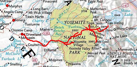 [3] Coulterville及びMariposaトレイルは、現在の車道CA120とWawona Rd.は全く別のところを通っていました。