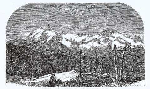 奥には13,000ft.を越える雪を抱いた花崗岩の山が、青空を背景に聳えたっていました。 ”It was most picturesque, wild, and grand. And what an experience!…” Brewerはかなりの量を割いて、そのキャンプ地一帯の美しさを書きとめています。