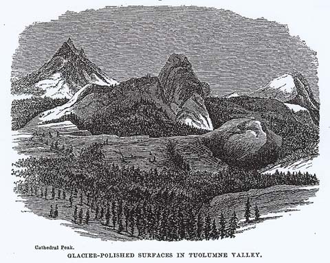 [6] Muirは1870年、シエラに氷河が現存する事を発見します。ヨセミテ・シエラの氷河は、形状だけを見れば万年雪渓のようなもので、ヨーロッパでの大氷河を見ている3人にとっては、氷河と考えるに到らなかったと思われます。
