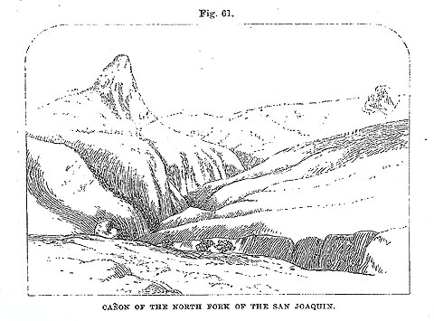 [”Geology Vol. I”に掲載されたBalloon Dome(Middle Fork San Joaquin River):Hoffmannのスケッチに基づく版画]